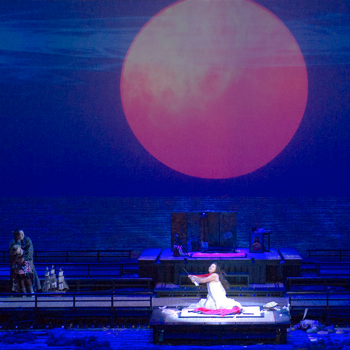 Yet De Ana resisted the urge to push this element of the story, choosing instead to present a rather straightforward account of the interactions among Cio-Cio San, Pinkerton, Suzuki, and Sharpless, but staging the arrivals of the other characters as extravaganzas that combined Kabuki, Bunraku, and Noh theater, all to sensational effect.